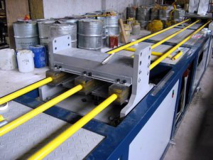 需要注意的是不同的拉擠產品其生產模具是不同的(模具基礎不變,需要更換的是活動模具)。如玻璃鋼方管和玻璃鋼圓管的生產模具不同,而且孔徑、厚度等均需要調整模具。