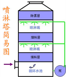 位于塔體頂部出風口的下端,因為經處理后的廢氣含有一定的水分,故需要經過除霧層祛除水氣。常用的除霧裝置有填料式和旋流板式這兩種,具體如何選擇需根據實際情況選擇。