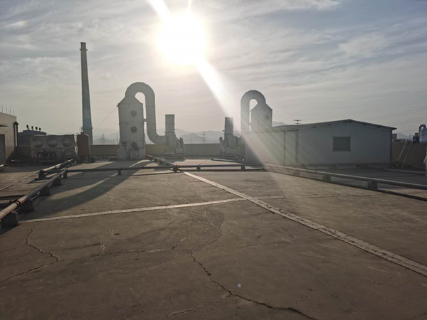 在廢氣處理系統中,一些大型的廢氣處理工程都是多臺玻璃鋼酸洗塔與多臺玻璃鋼風機搭配使用的。如上圖就是風機與廢氣處理塔的安裝完成圖。