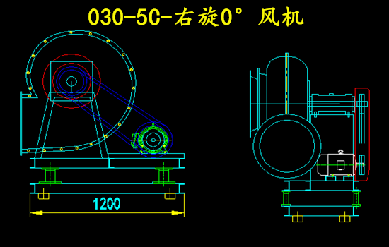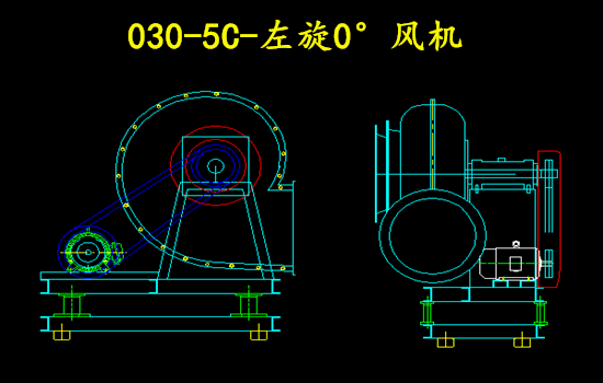 本文介紹的方向為0°的風機,其出風口方向與180°類似,區別是180°方向風機的出風口在水平線上面,而0°風機的出風口位于水平線下面。