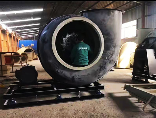 玻璃鋼離心風機的型號超過10C時,因為風機的葉輪、外殼等配件的尺寸都偏大,所以需要將玻璃鋼材質的架子更換為碳鋼架子。最近有個江蘇的客戶從我司采購了一臺14C的風機,下面是該風機的安裝與發貨圖。