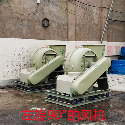 風機的方向與進出口的位置有關,而風機的進風口位置都是固定不變的,所以風機的方向也就是出風口的方向。一般我們會以玻璃鋼風機葉輪的中心點作一條水平線,風機出風口與這條水平線的角度就是風機的方向。比如上圖就是90°的方向,除此之外還有180°、0°、45°、225°等等。