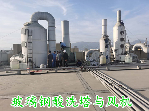 至于風機與玻璃鋼酸洗塔的安裝位置與處理的廢氣成分、管道分布有關,一般建議,在風機風量足夠的前提下,將風機安裝在廢氣處理塔后面。
